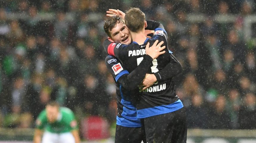 In einer chancenarmen Partie lief Aufsteiger Paderborn gegen Werder Bremen fast die gesamte Spielzeit hinterher. Durch einen verunglückten Schuss in der Nachspielzeit kam der Außenseiter aber doch noch zum Sieg. Carmen Jaspersen/DPA Späte und unverhoffte Freude: Paderborns Spieler bejubelt den späten Siegtreffer gegen Werder Sonntag, 08.12.2019 19:56 Uhr Werder