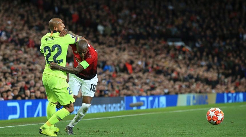 Der FC Barcelona gewinnt zwar das Viertelfinal-Hinspiel der Champions League bei Manchester United, spielt aber nicht wie ein Titelfavorit. Die Engländer hoffen nun auf eine besondere Auswärtsstärke. Jon Super / AP Eine Szene wie das ganze Spiel: Manchesters Ashley Young (r.) im Duell mit Barcelonas Arturo Vidal. Am Ende siegte Vidals Team, aber