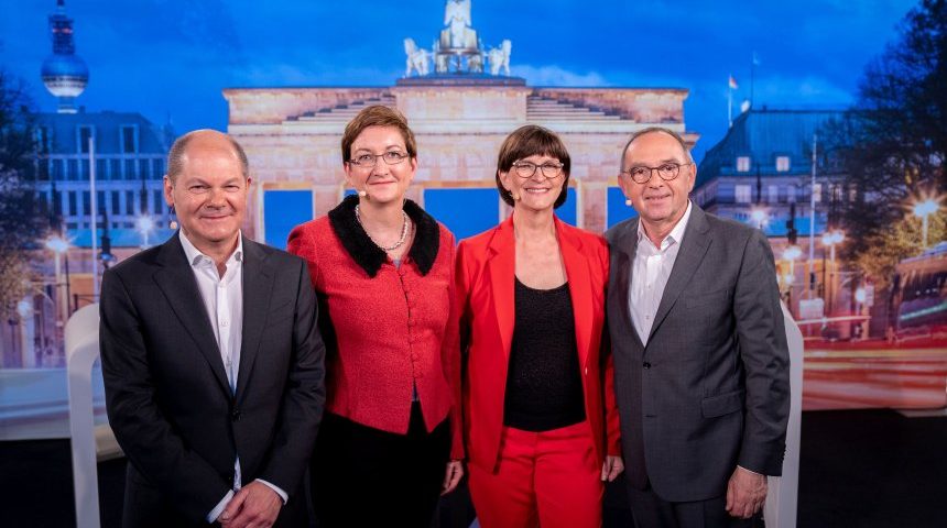 Jetzt gilt es: Die SPD-Mitglieder wählen ihre neuen Vorsitzenden. Beim letzten Duell üben die Kandidaten den Balanceakt. Wenn das Ergebnis knapp ausfällt, droht eine Spaltung der Partei. Kay Nietfeld/DPA SPD-Kandidaten Olaf Scholz, Klara Geywitz, Saskia Esken, Norbert Walter-Borjans: Duell in Berlin-Mitte Montag, 18.11.2019 23:52 Uhr Kurz vor Schluss geht