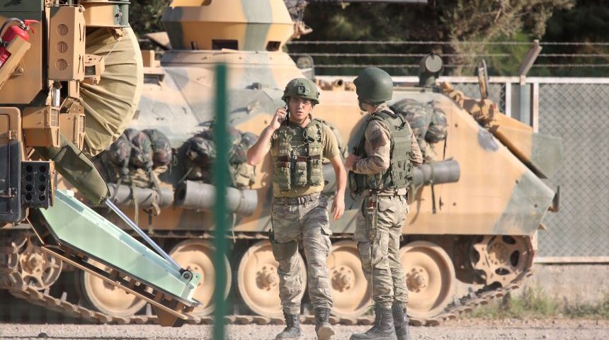 Trotz internationaler Kritik setzt die Türkei ihre Offensive in Syrien fort. Eigenen Angaben zufolge haben die Truppen die Grenzstädte Ras al Ain und Tel Abjad umzingelt. Zehntausende sind auf der Flucht. STR/EPA-EFE/REX Türkische Soldaten Donnerstag, 10.10.2019 18:45 Uhr Bei ihrer Offensive in Nordsyrien gewinnt die Türkei offenbar an Boden.