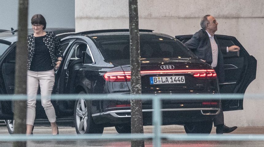 Seit der Wahl des neuen SPD-Führungsduos streitet die Große Koalition über ihre zukünftige Linie. Sogar von einem Bruch des Bündnisses ist offen die Rede. Jetzt suchen die Parteispitzen das Gespräch. Paul ZinkenDPA SPD-Chefs Saskia Esken und Norbert Walter-Borjans vor einem Besuch bei Bundeskanzlerin Angela Merkel (CDU) Donnerstag, 12.12.2019 20:23