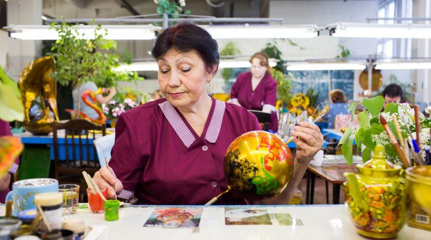 Ekaterina Anokhina Chochloma-Malerei ist typisch russisches Handwerk, goldfarbene Schalen und Löffel werden mit filigranen Motiven verziert. Diesen Job macht Tatiana Kalinina – zur WM bemalt sie sogar Fußbälle. Montag, 18.06.2018 19:10 Uhr [STECKBRIEF] Tatiana Kalinina57 Jahreverheiratet, Mann Michailzwei Söhne, vier EnkelChochloma-Malerin DER SPIEGEL Oft mag Tatiana Kalinina das, was